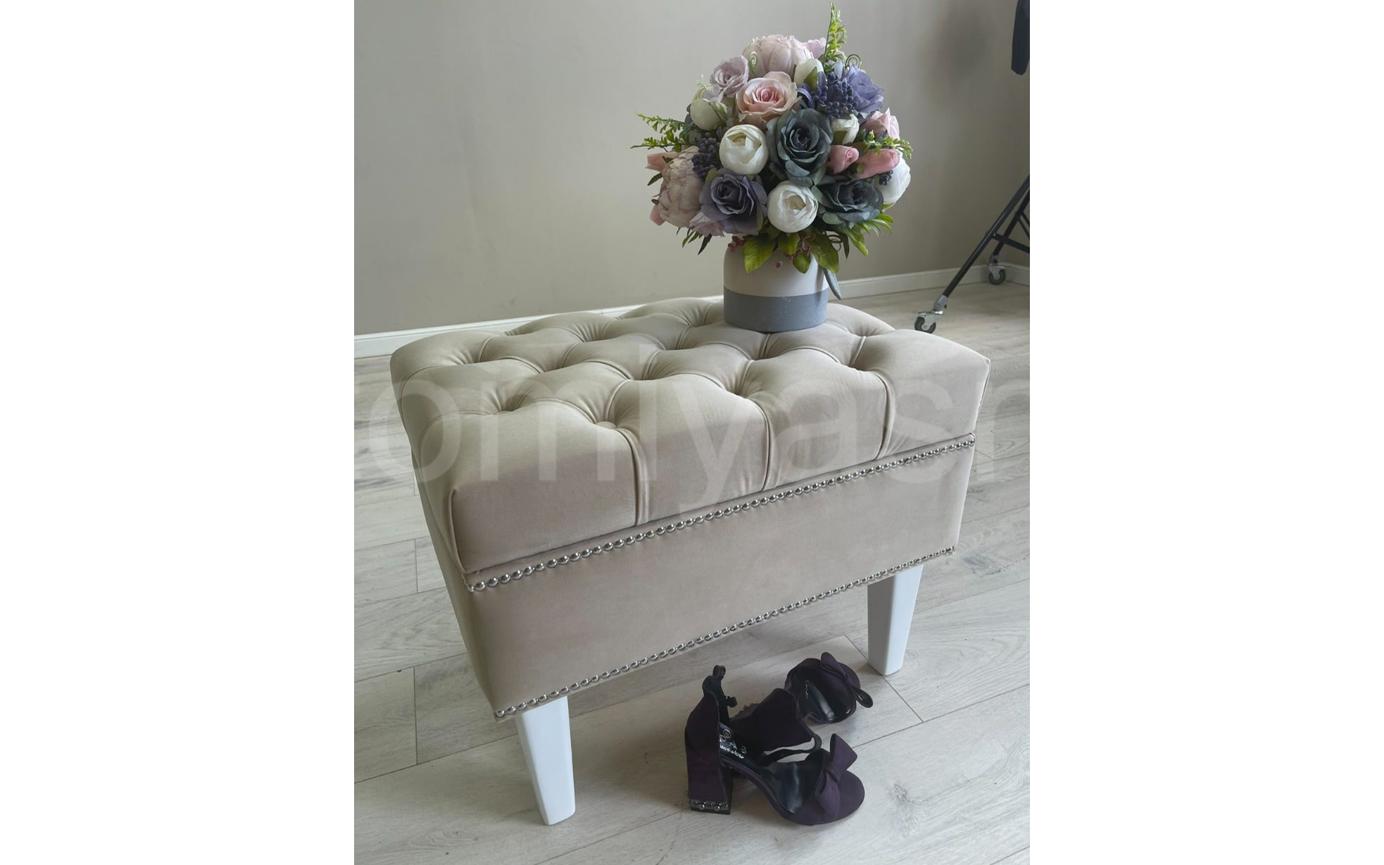 Нас с мужем пригласили лучшие друзья на годовщину свадьбы. Двадцать лет со дня свадьбы это уже значимое событие и подарок хотелось сделать незабываемый на память. Я решила, что это самый лучший подарок, которая наша семья может позволить. Мы выбрали цвет один в один как прихожая. Модель пуфа очень интересна, ножки очень красивые и необычные. Верх пуфа оформлен очень интересно. Сам пуф имеет нишу внутри для хранения всяких мелочей. Когда мы вручили подарок, радости хозяевам торжества не было предела.